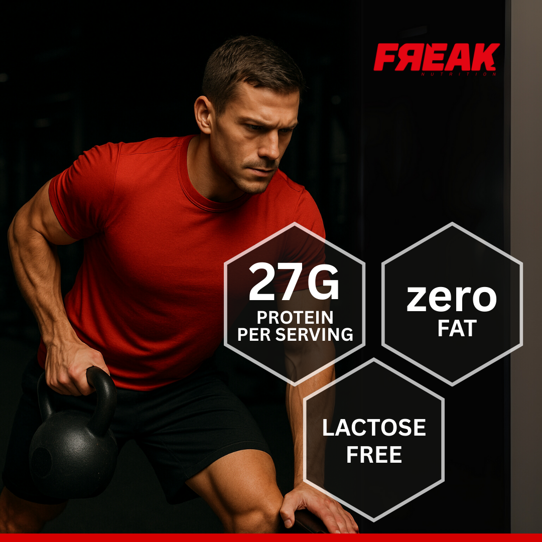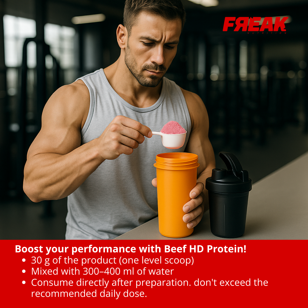 Freak Beef HD Raspberry-Mango combines tangy raspberry with sweet mango in a formula built for performance. With 60% hydrolyzed beef protein isolate, each serving delivers 27g of fast-absorbing protein to enhance muscle recovery and growth. Lactose-free, zero-fat, and free from added sugars, it’s perfect for athletes focused on lean gains and digestive comfort. The 1800g container provides 30 servings, making it ideal for post-workout shakes and smoothies.