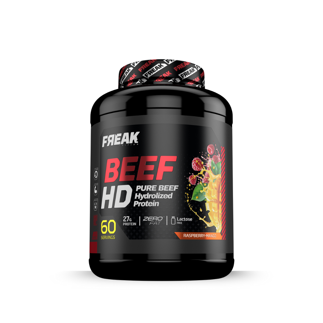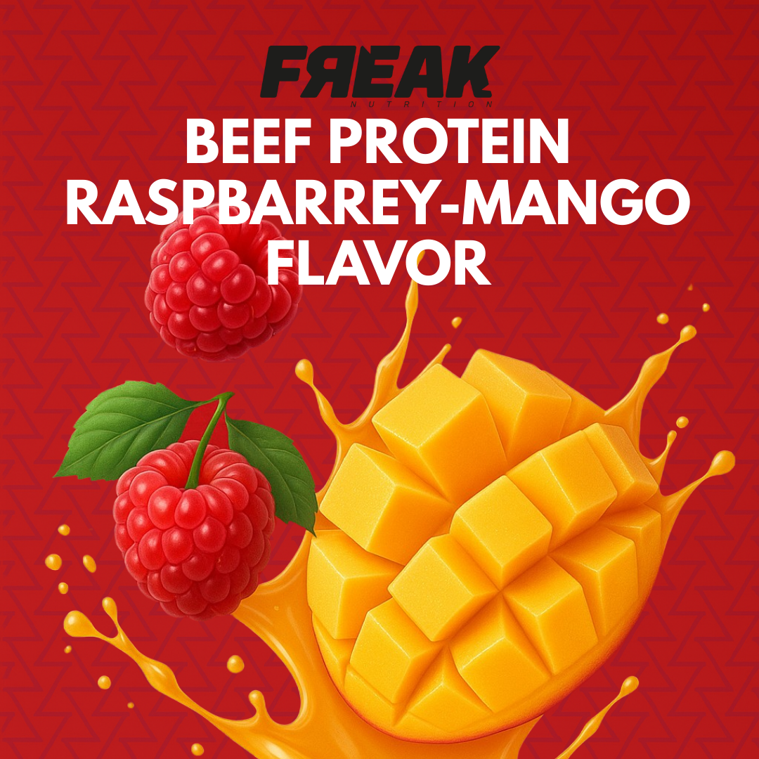 The FREAK BEEF HD Raspberry-Mango variant combines tangy raspberry and sweet mango in a powerhouse formula designed for athletes seeking both flavor and performance. Featuring 60% hydrolyzed beef protein isolate, it delivers 27g of fast-absorbing protein per serving to accelerate muscle recovery and growth. Lactose-free, zero-fat, and free of added sugars, this variant caters to fitness enthusiasts prioritizing lean gains and digestive comfort.