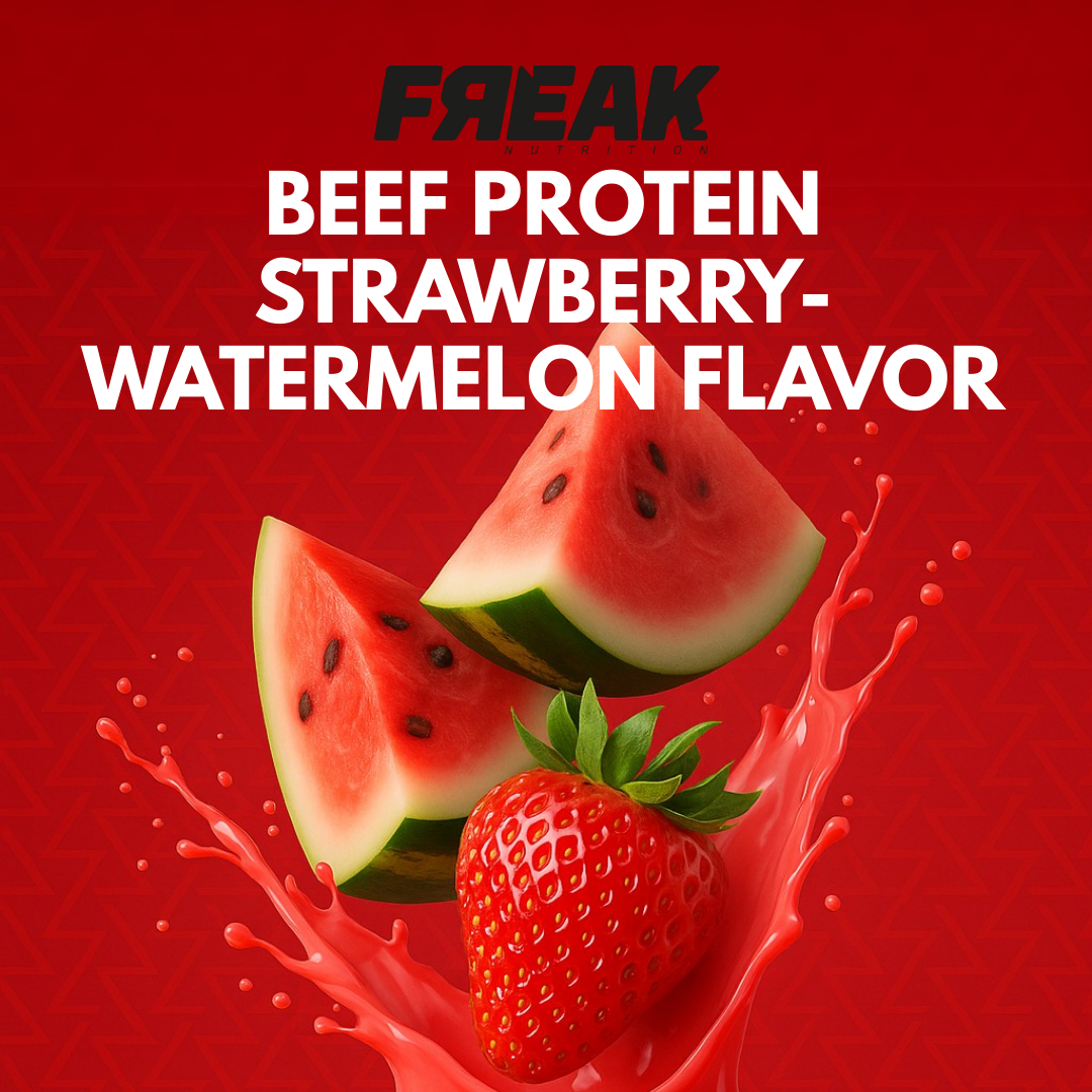 No bloat, no fillers—just clean, hydrolyzed beef protein with a delicious fruity finish. Fuel your grind and quench your thirst for results with FREAK BEEF HD Strawberry-Watermelon Splash. It’s not just a supplement; it’s your new favorite post-workout ritual.