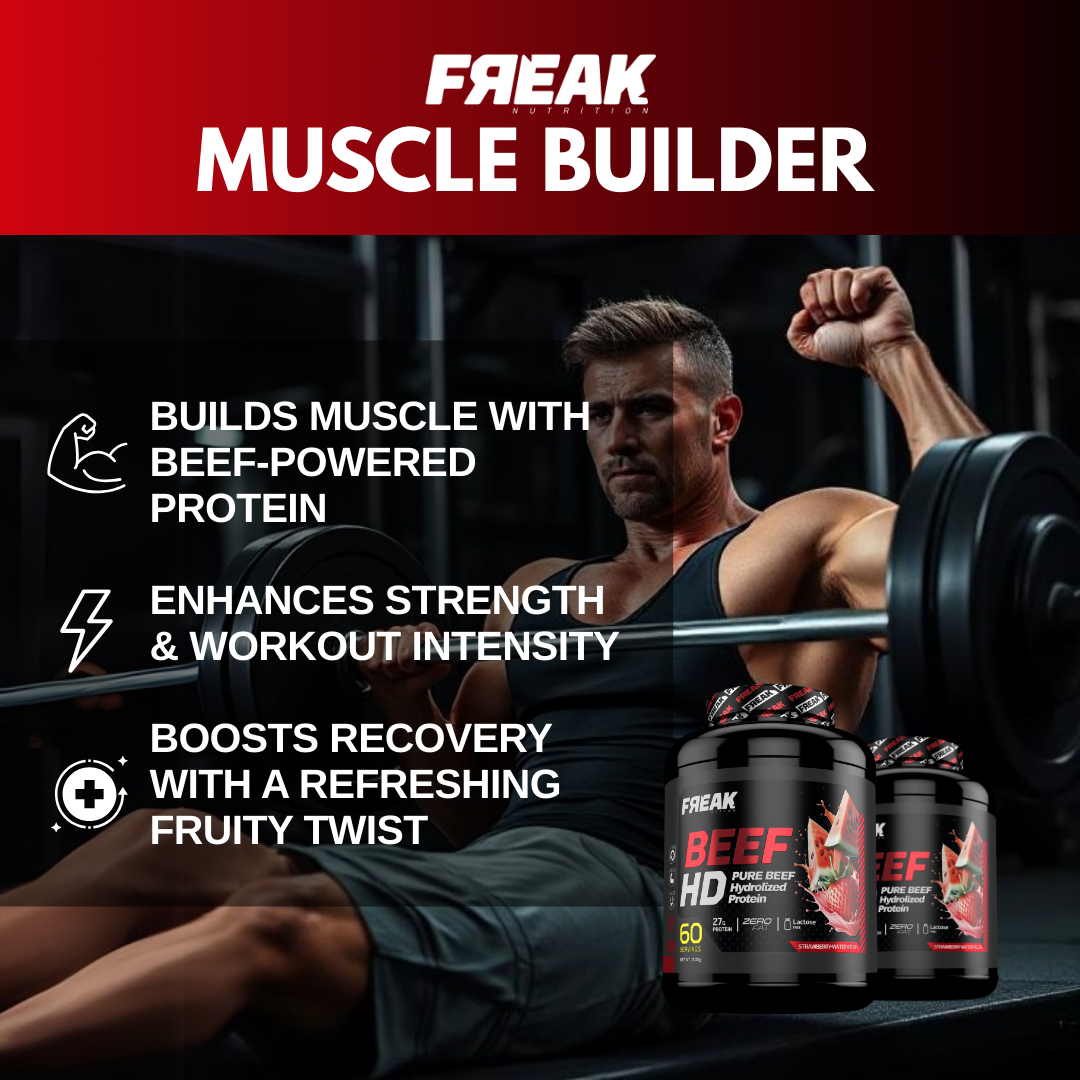 Perfect for summer training sessions or whenever your muscles demand rapid recovery, this formula supports lean muscle development, enhances performance, and keeps you feeling refreshed. Whether you’re lifting, sprinting, or recovering from a brutal workout, FREAK BEEF HD keeps your protein intake on point without sacrificing flavor.